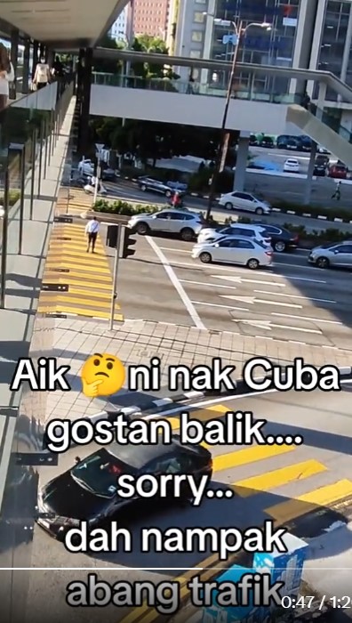 Ada juga yang cuba untuk mengundur ke belakang selepas melebihi garisan putih tetapi pegawai polis trafik sudah nampak kesalahan yang dilakukan pemandu tersebut.
