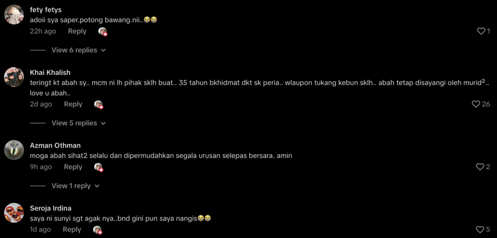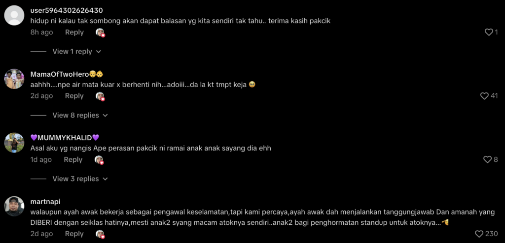 Ruangan komen pula dibanjiri dengan ucapan terima kasih dan doa daripada netizen yang turut tersentuh dengan momen manis itu.
