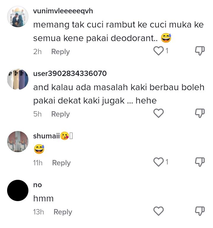 Cover image via @amygitchew (TikTok)Seperti yang kita ketahui, deodorant digunakan untuk membunuh bakteria yang boleh menyebabkan bau busuk di ketiak
