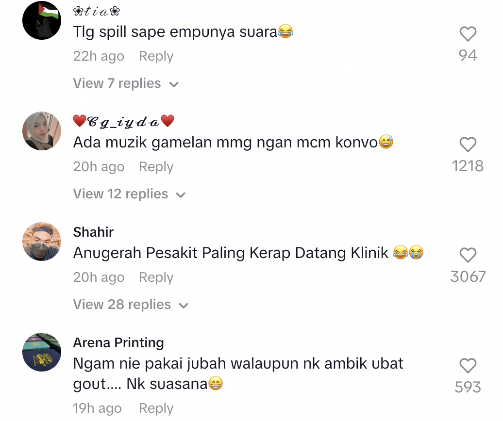 "Ngam ni pakai jubah walaupun nak ambil ubat gout. Nak suasana" – Netizen