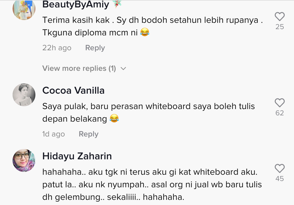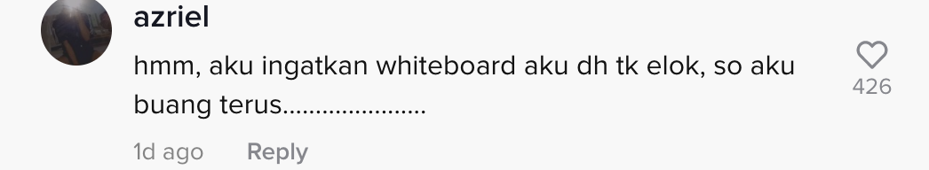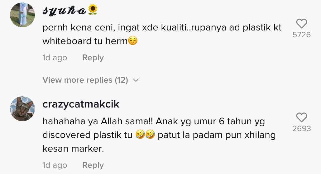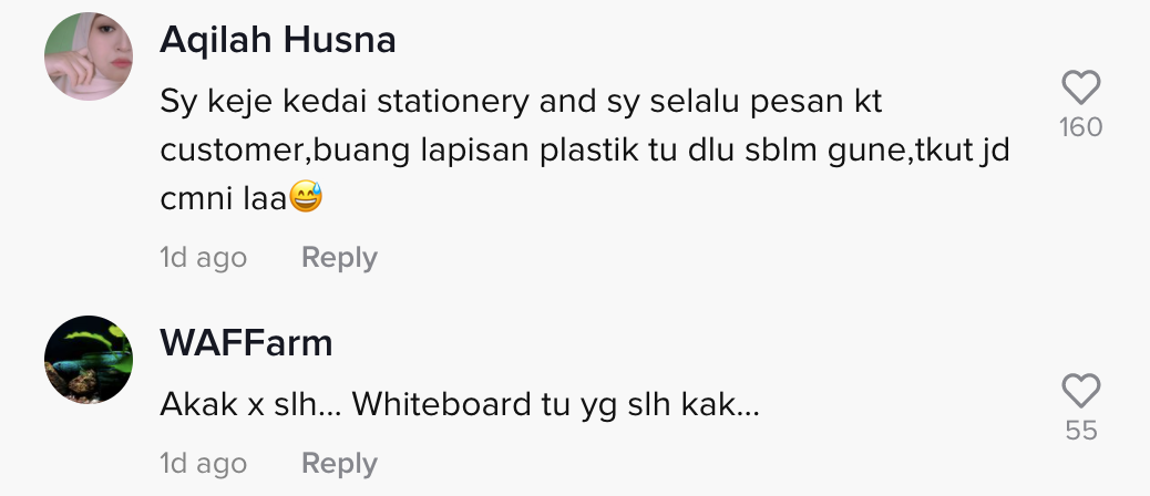 "Pernah kena macam ni, ingatkan takde kualiti rupanya ada plastik dekat whiteboard tu" – Netizen