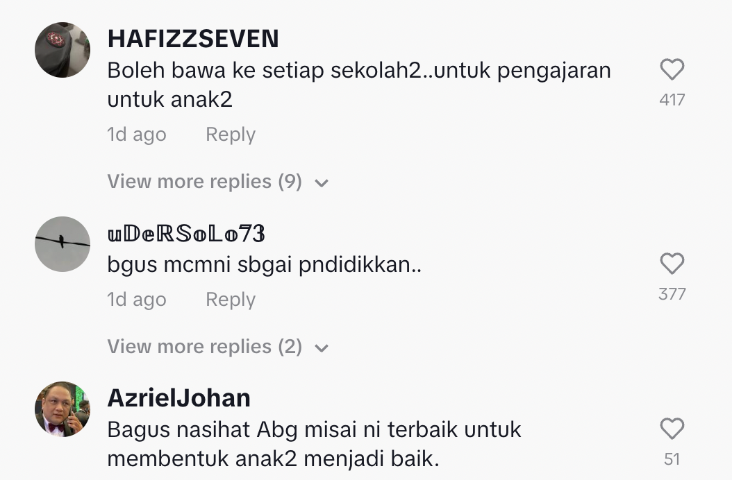 Berikut di bawah adalah antara komen daripada netizen di TikTok: