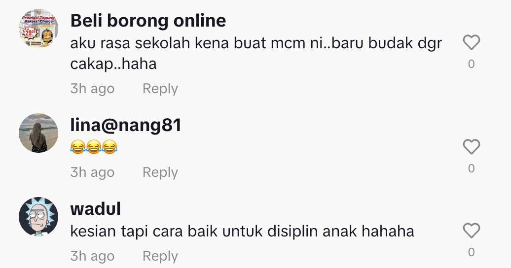 "Kesian tapi cara baik untuk disiplin anak hahaha" – Netizen