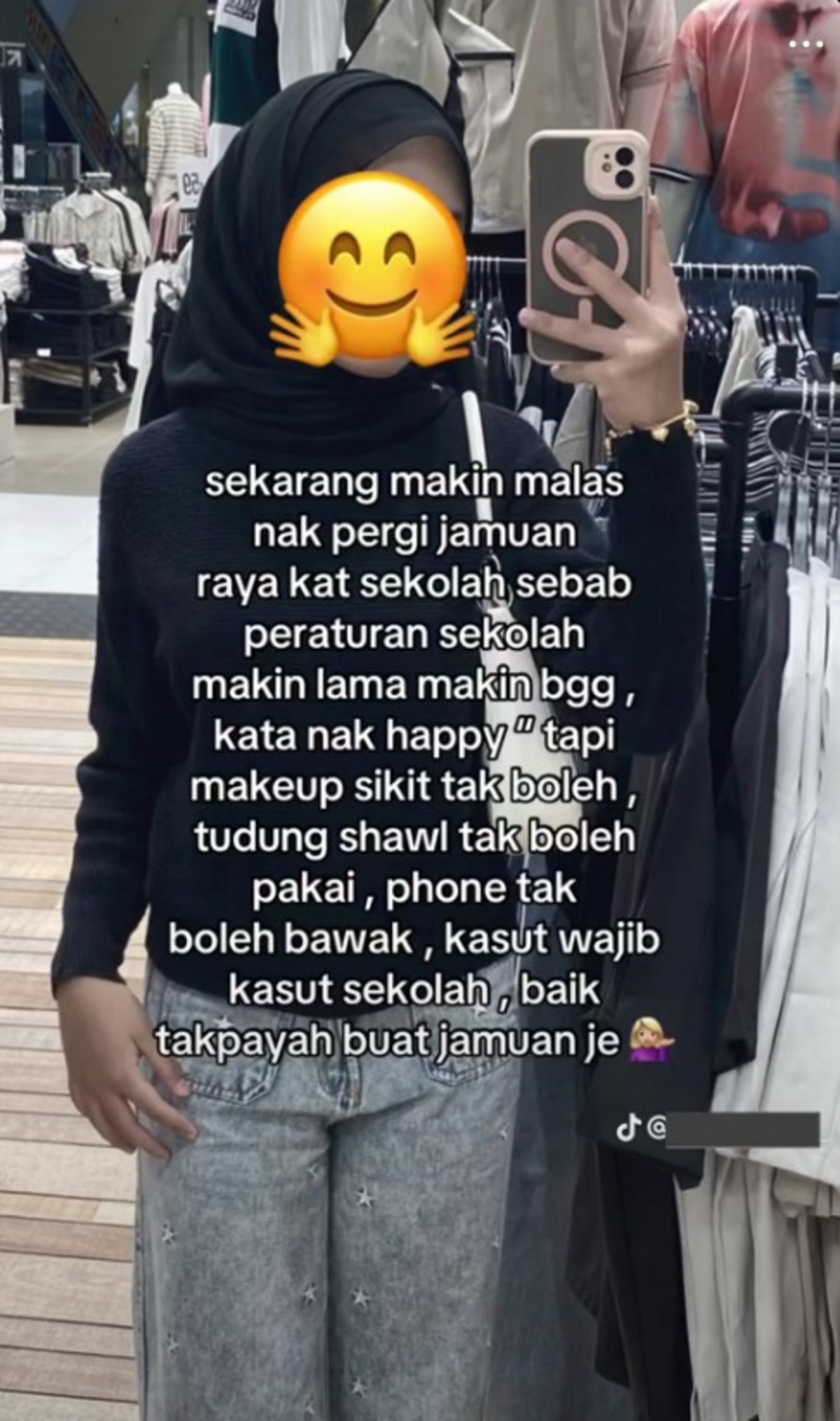 Menerusi perkongsian di TikTok, seorang pelajar sekolah telah meluahkan rasa tak puas hati selepas mendapat tahu peraturan sekolah ketika jamuan raya sekolah.