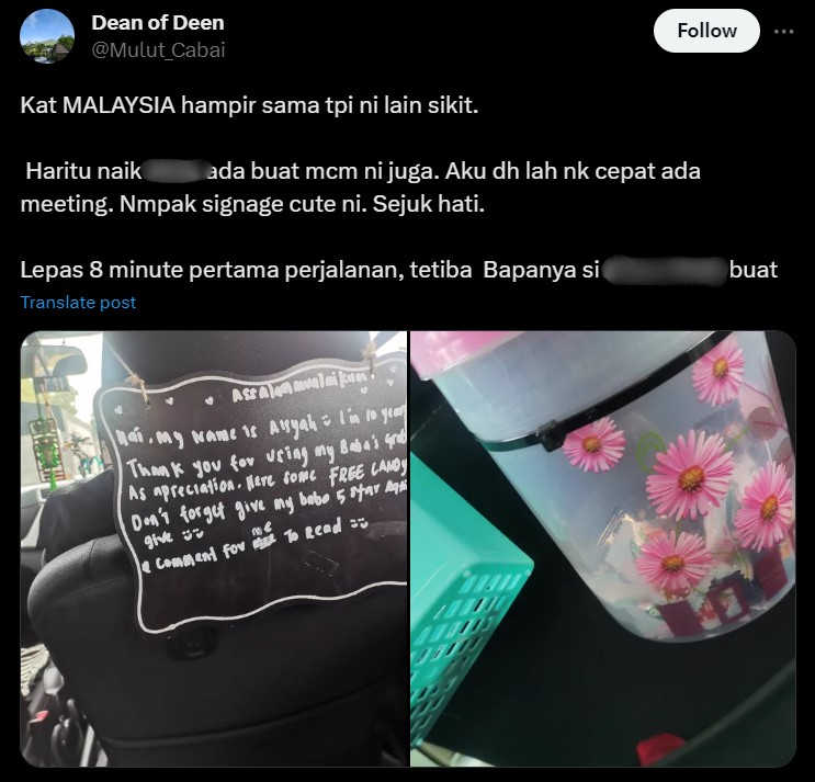 Pelanggan Sejuk Hati Nampak Signage Comel, Tapi Pemandu e-Hailing Ini Pula Buat Hal