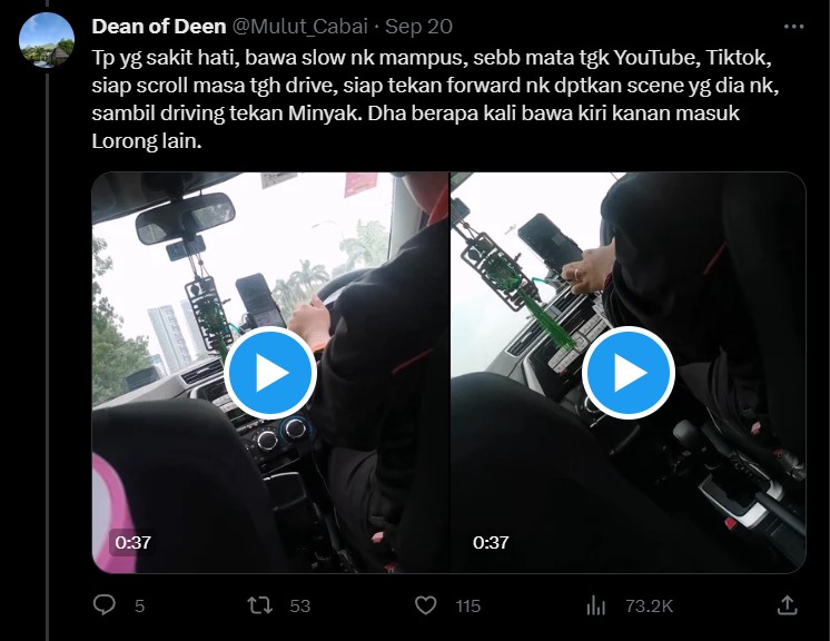 Memandu sambil melayan YouTube dan TikTok