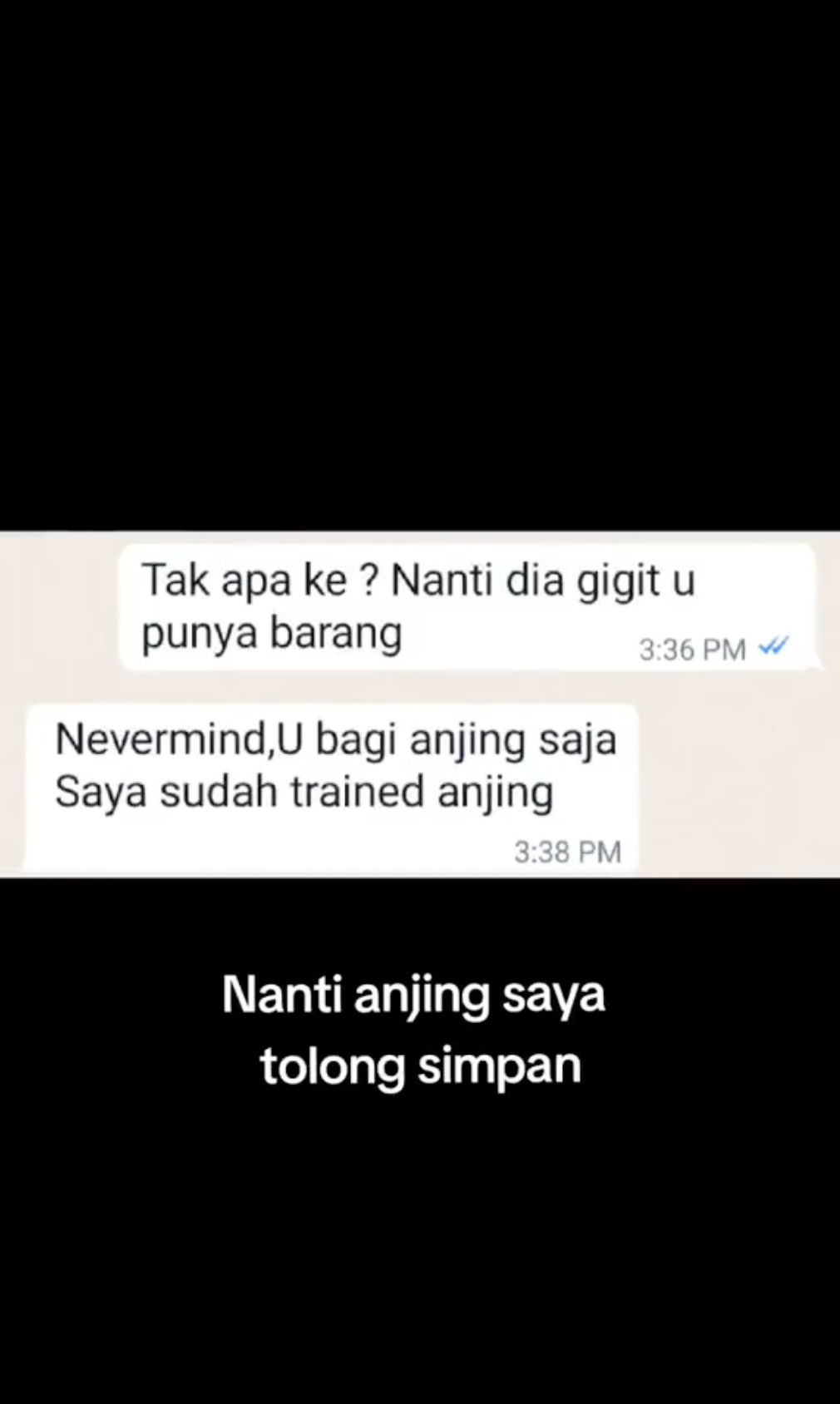 Namun, difahamkan pelanggan itu tiada di rumah semasa proses penghantaran. Dia kemudian meminta pekerja courier tersebut untuk memberikan saja pada anjingnya untuk digigit.