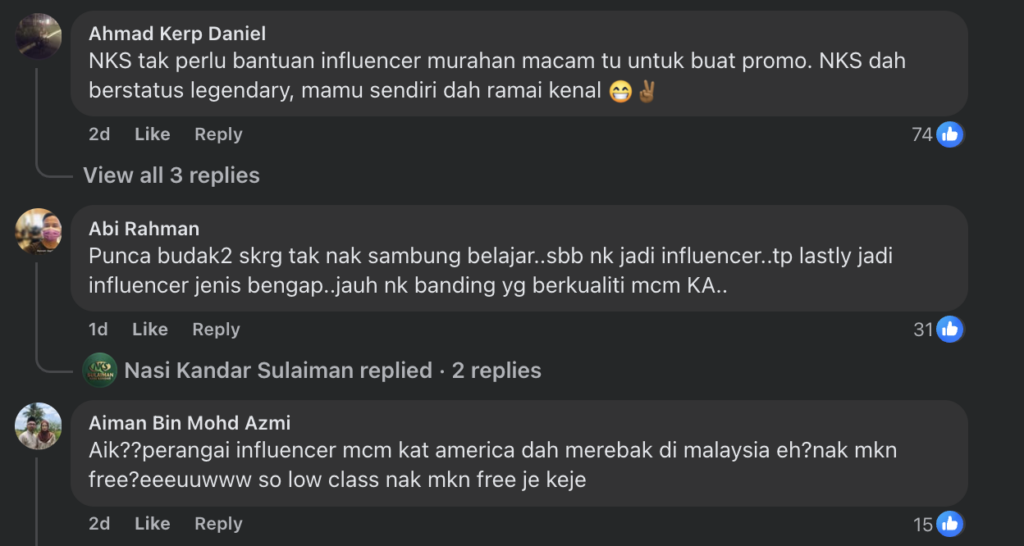 Seperti apa yang terjadi baru-baru ini apabila seorang pemilik restoran nasi kandar terkenal mendedahkan pengalaman berdepan dengan individu yang mendakwa dirinya seorang influencer dan cuba mendapatkan hidangan percuma di restorannya.