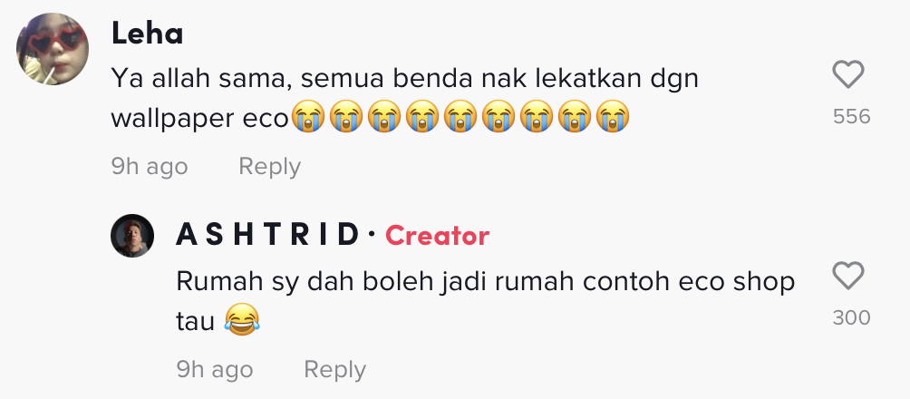 Begitu juga dengan satu video yang tular baru-baru ini memaparkan situasi rumah seorang peminat Eco Shop yang dipenuhi wallpaper dari kedai itu telah menarik perhatian ramai.