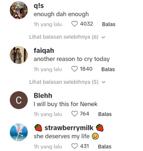 Berikut di bawah merupakan antara komen menarik daripada netizen di TikTok: