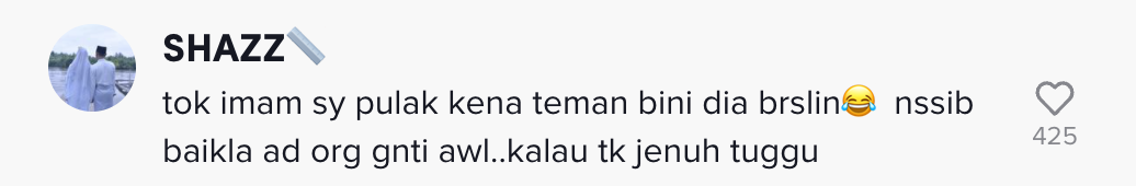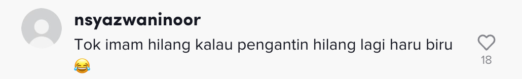 Dalam pada itu, tinjauan di ruangan komen mendapati rata-rata netizen turut terhibur dengan situasi itu. Malah, ramai pula yang berkongsi pengalaman sama mereka dengan tok kadi masing-masing.