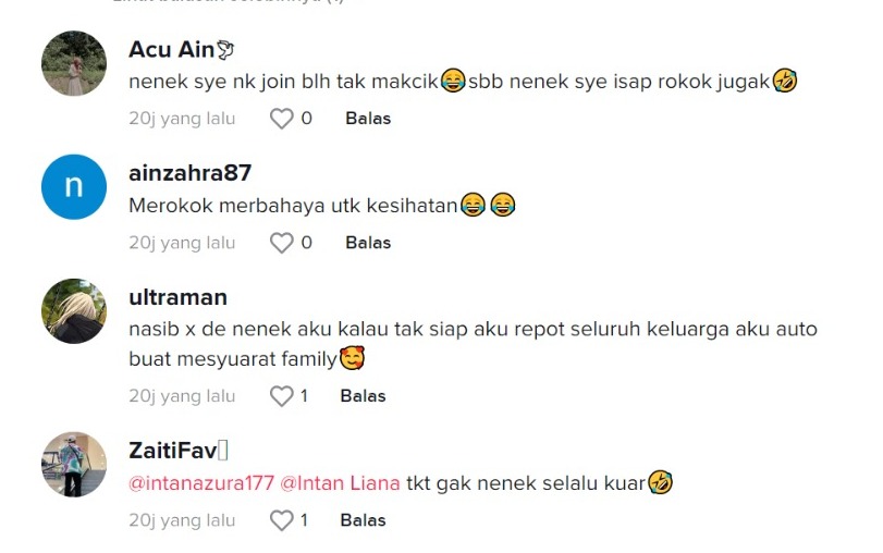 Dalam pada itu, tinjauan di ruangan komen mendapati rata-rata netizen turut terhibur melihat gelagat spontan nenek-nenek tersebut dan memberi komen mencuit hati mengenainya.
