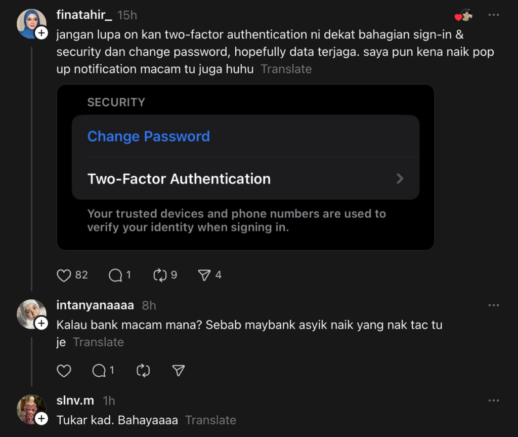 Ada yang menyuruh dia menukar password dan mengaktifkan Two Factor Authentication di telefonnya supaya tidak mudah digodam.