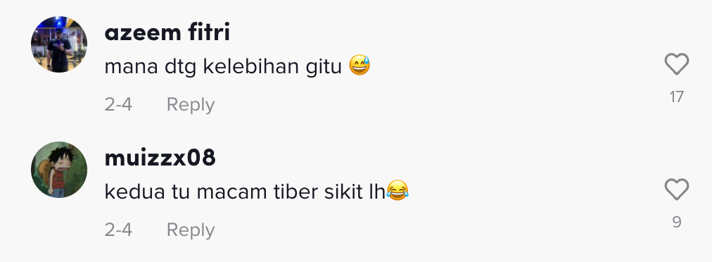 Berikut di bawah adalah antara komen menarik daripada netizen di TikTok: