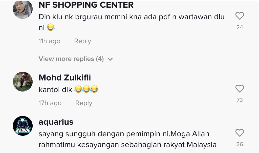Berikut di bawah adalah antara komen daripada netizen di TikTok: