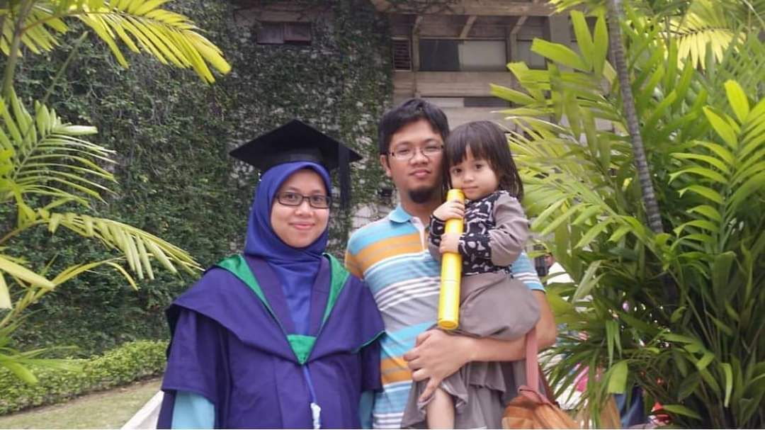Gambar Syazwani bersama suami ketika graduasi sarjana di salah satu universiti tersohor tempatan.