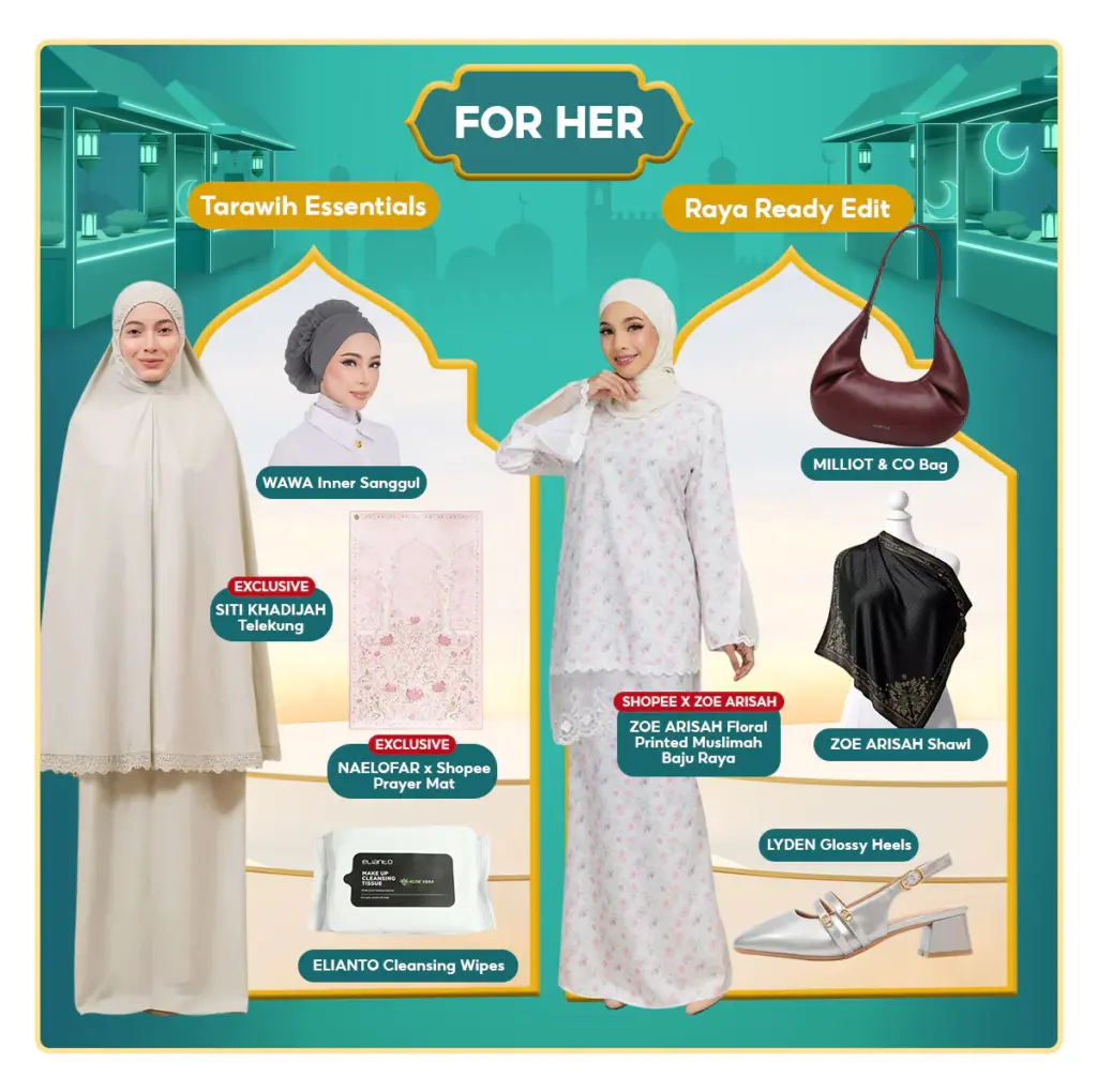 Bagi anda yang tak tahu nak mix & match? Jangan risau, Shopee ada banyak inspo gaya praktikal yang boleh anda rujuk melalui katalog fesyen mereka. Ini menjadikan persiapan fesyen Ramadan dan raya lebih mudah dan tak serabut. Buat peminat Siti Khadijah dan Melia Design jangan lupa untuk dapatkan koleksi Ramadan eksklusif Shopee yang direka untuk memberikan keselesaan ketika menunaikan solat mahupun menghadiri moreh.