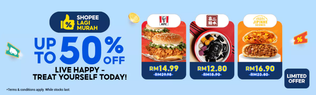 Bagi anda yang tak sempat masak untuk sahur dan berbuka, jangan lepaskan peluang untuk rebut Diskaun 50% daripada jenama kegemaran ramai seperti Ayam Gepuk Top Global, Tealive dan Mixue. Untuk yang suka rancang awal, ShopeeFood turut menawarkan e-baucar Beli 1 Percuma 1 daripada CHAGEE, Pop Meals dan Salad Atelier. Baucar ni korang boleh beli dan simpan dulu dan gunakan bila perlu.