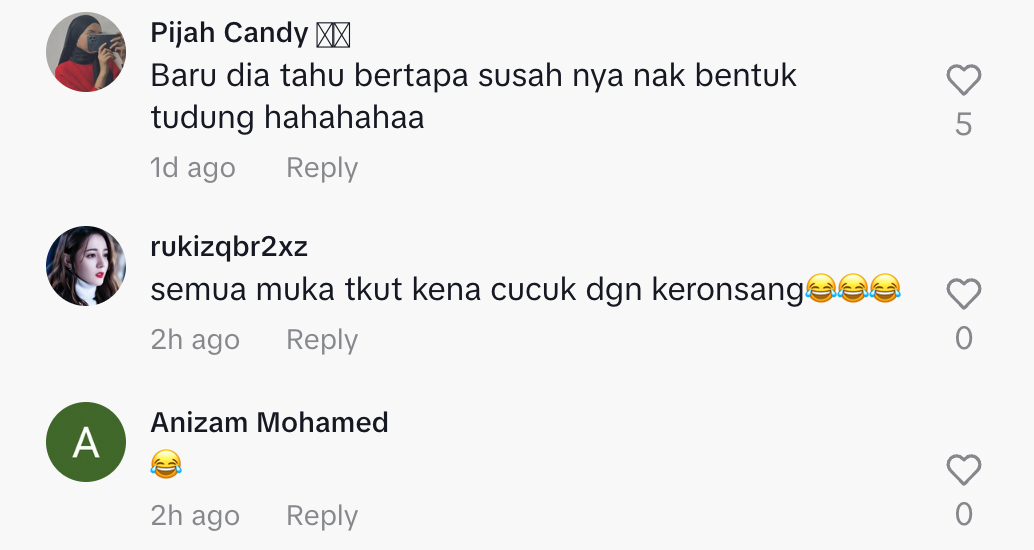 "Baru dia tahu betapa susahnya nak bentuk tudung haha" – Netizen