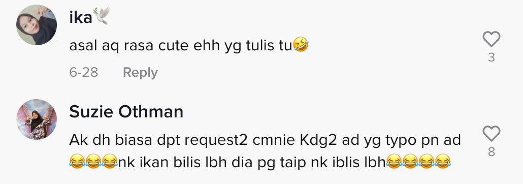 Dalam pada itu, tinjauan di ruangan komen mendapati rata-rata netizen turut terhibur melihat gelagat nota tersebut. Malah, ramai yang berkongsi pengalaman sama mereka apabila meminta special request semasa membeli makanan.