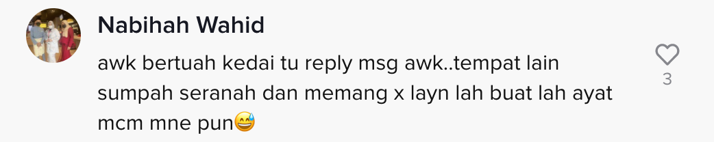 Rasa macam comel je kedai tu punya reply.