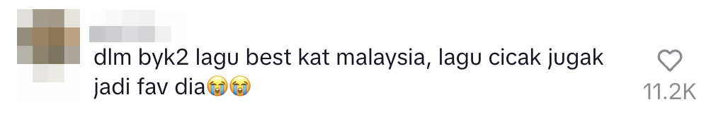Ketika disoal mengenai pilihan lagu kegemaran, individu tersebut menyatakan kecintaan terhadap muzik Malaysia dan kemudian menyanyi "cek cek cek itulah bunyi cicak."