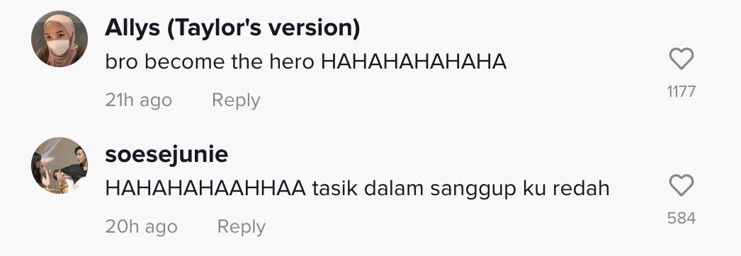 Berikut di bawah adalah antara komen daripada netizen di TikTok: