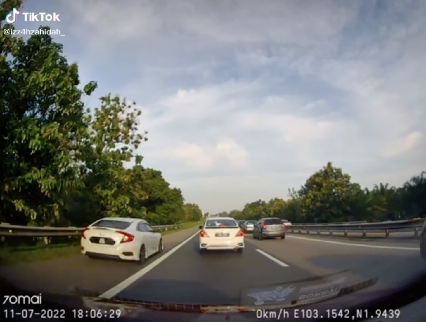 Menerusi video tersebut, kelihatan rakaman dari dashcam menunjukkan kesesakan jalan raya di sebuah lebuh raya.