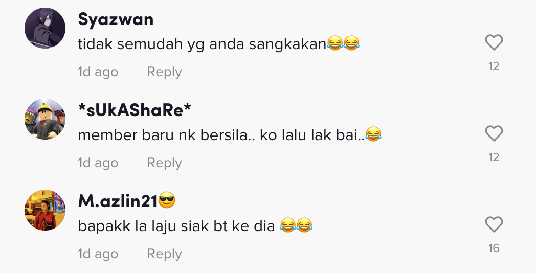 Berikut di bawah adalah antara komen daripada netizen di TikTok: