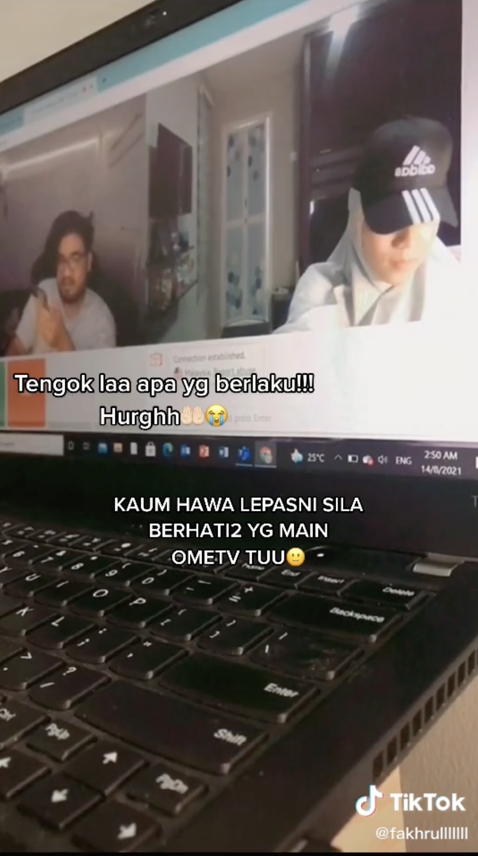 Menerusi video dari @fakhrulllllll, kelihatan semasa itu dia sedang bersiap sedia untuk melakukan prank melalui Ome TV dengan menyamar sebagai seorang perempuan.