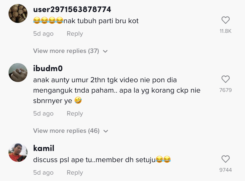 Berikut di bawah adalah antara komen menarik daripada netizen di TikTok: