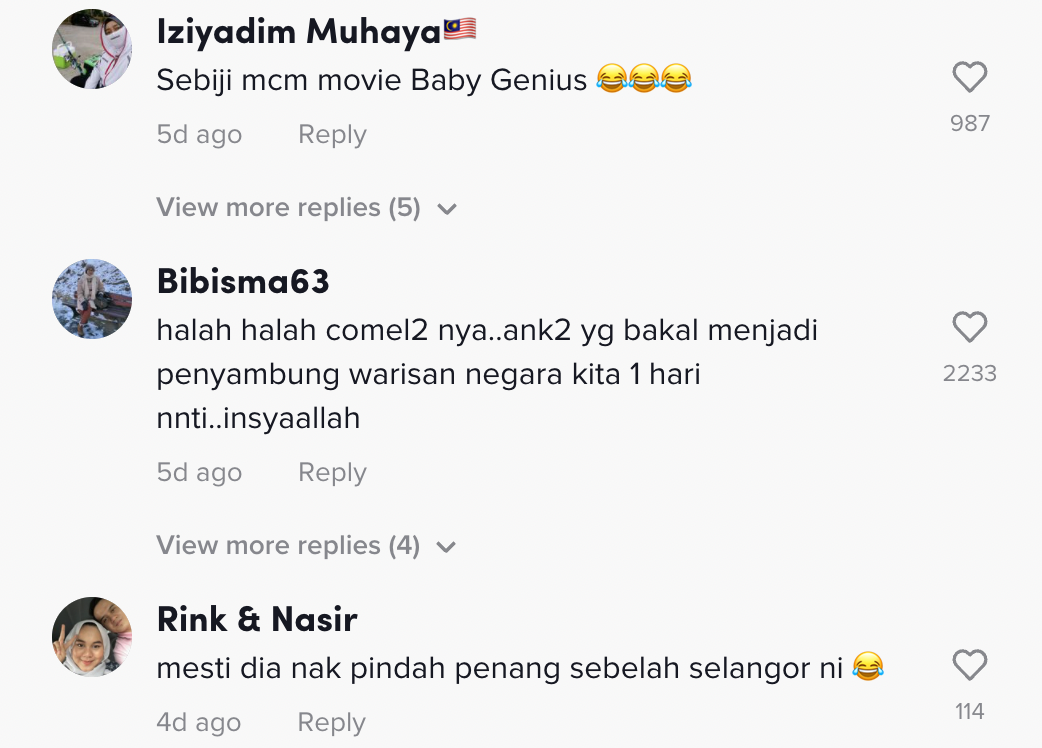 Dalam pada itu, tinjauan di ruangan komen mendapati rata-rata netizen turut merasa terhibur melihat gelagat budak-budak itu.