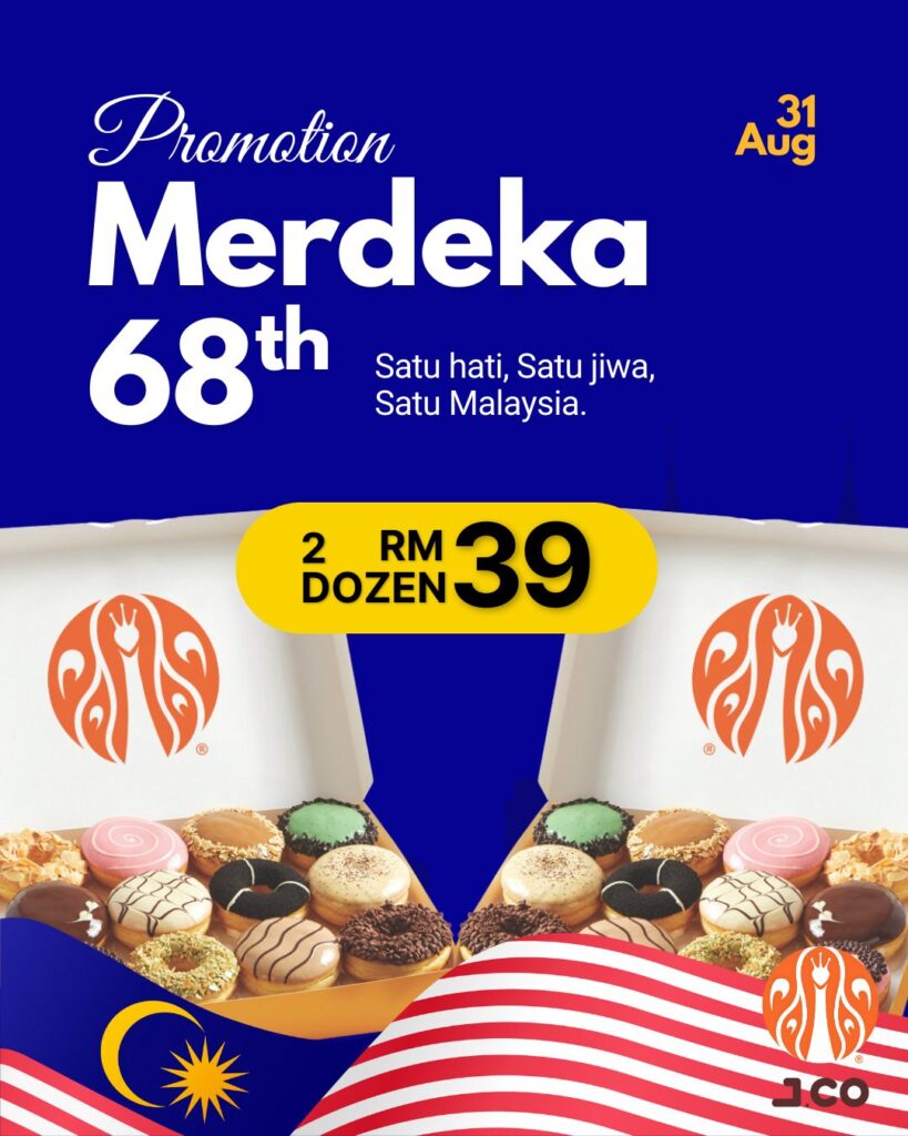 Hanya untuk tiga hari menjelang sambutan Hari Kebangsaan, anda boleh nikmati dua dozen donut pada harga RM39 dan mana-mana minuman pada harga RM11 di J.CO. 🍩☕
