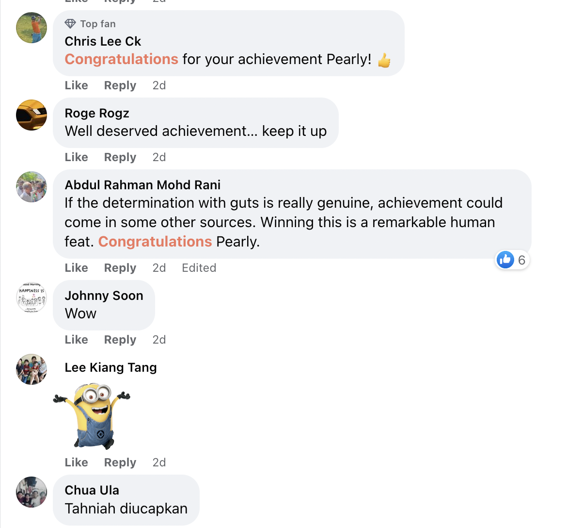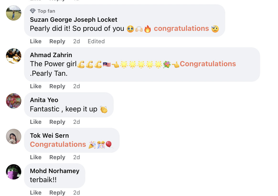 "The power girl. Congratulations Pearly Tan" – Netizen