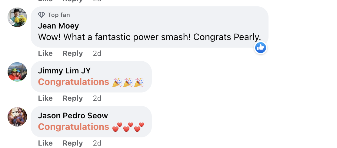 Tahniah diucapkan! Power betul smash Pearly Tan ni 😀