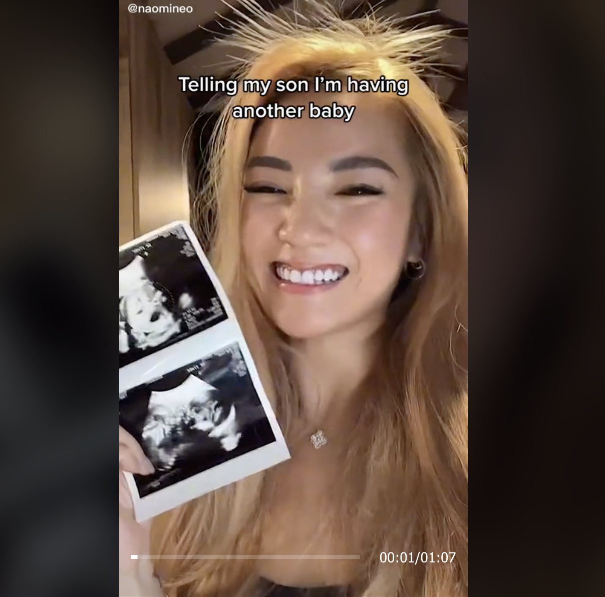 Menerusi video yang dikongsi oleh @naomineo, kelihatan seorang wanita dengan teruja memberitahu anaknya bahawa dia akan mendapat baby baru.
