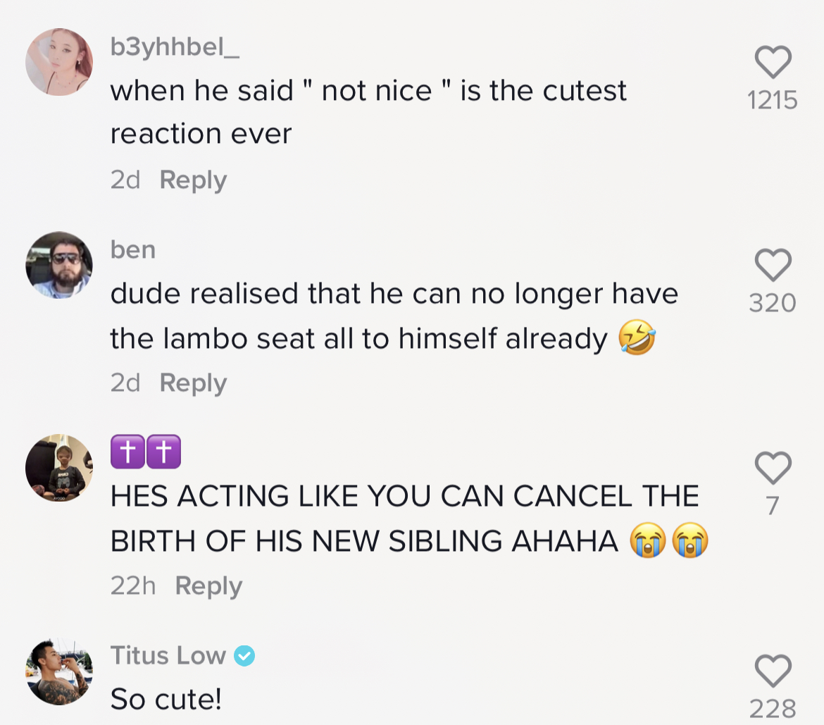 Baru-baru ini, tular sebuah video di TikTok berkenaan reaksi seorang budak lelaki yang meraung kesedihan apabila ibunya memberitahu dia akan mendapat adik telah mencuri perhatian ramai.