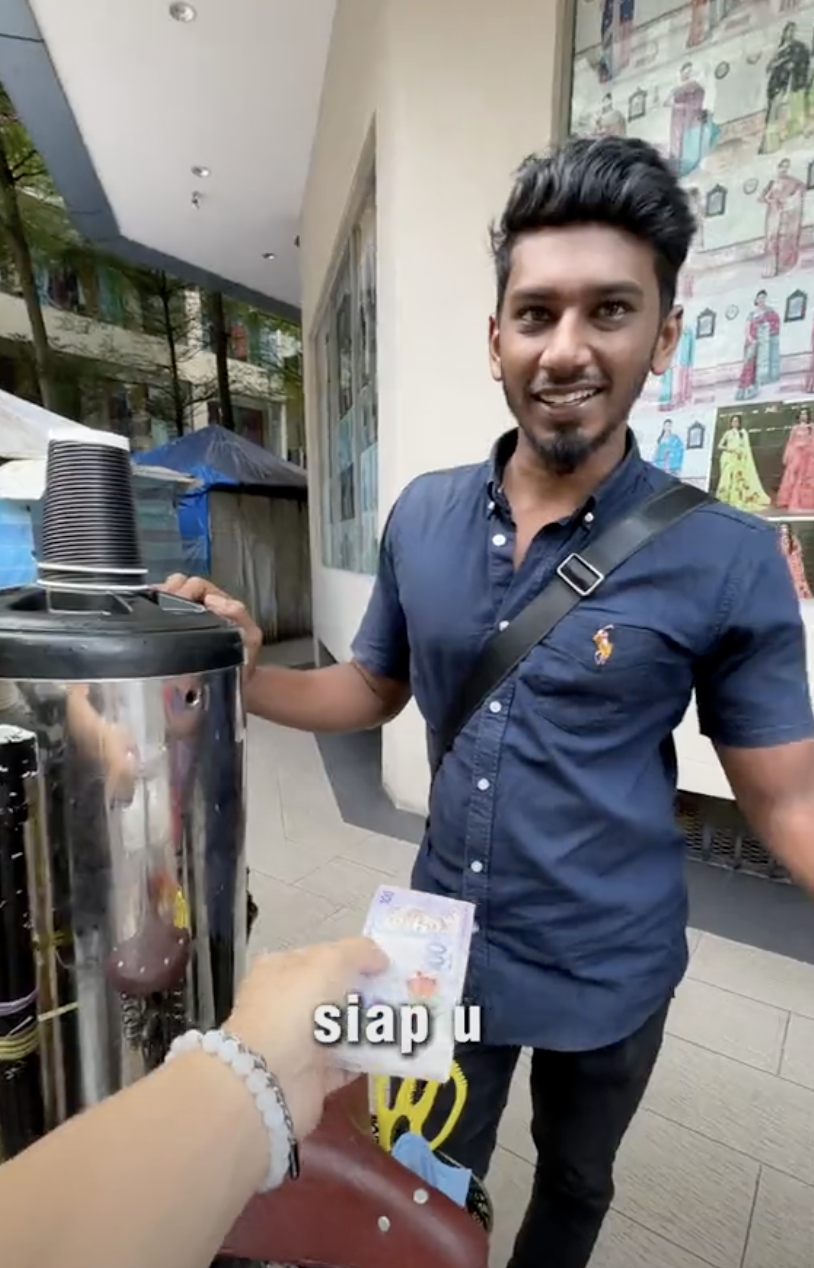 Di dalam video tersebut dia telah memberi RM100 kepada peniaga berkenaan mula menyediakan teh masala sebanyak 100 cawan.
