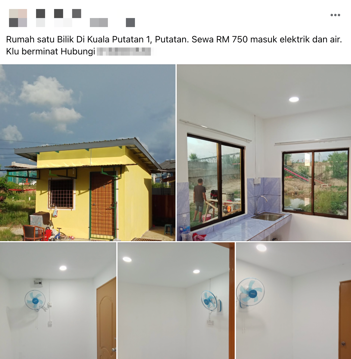 Menurutnya, rumah itu dilengkapi dengan satu bilik dan meletakkannya dengan harga RM750 sebulan termasuk bil elektrik dan air.