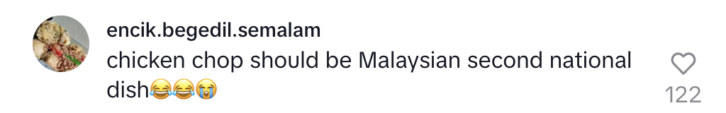 "Ia dicipta untuk kerajaan barat, tetapi ia bukanlah makanan barat. Chicken chop adalah makanan yang patut dibanggakan daripada Malaysia," katanya.