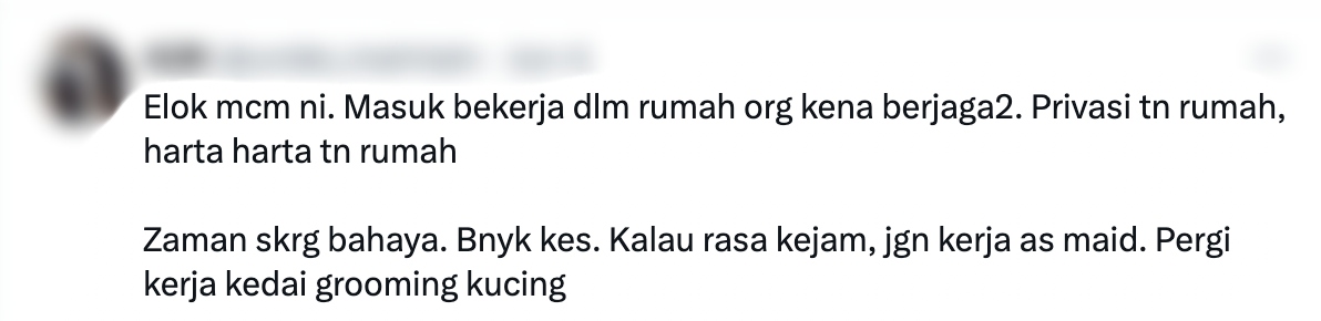 "Elok macam ini. Masuk bekerja dalam rumah orang kena berjaga-jaga" – Netizen