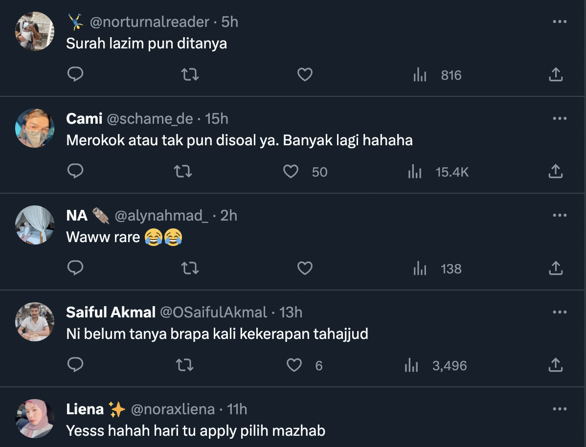 Namun, berbeza pula sebuah ciapan di Twitter ini apabila seorang individu berkongsi dia perlu mengisi mazhab mana yang diamalkan semasa mahu mengisi kerja telah mencuri perhatian ramai.