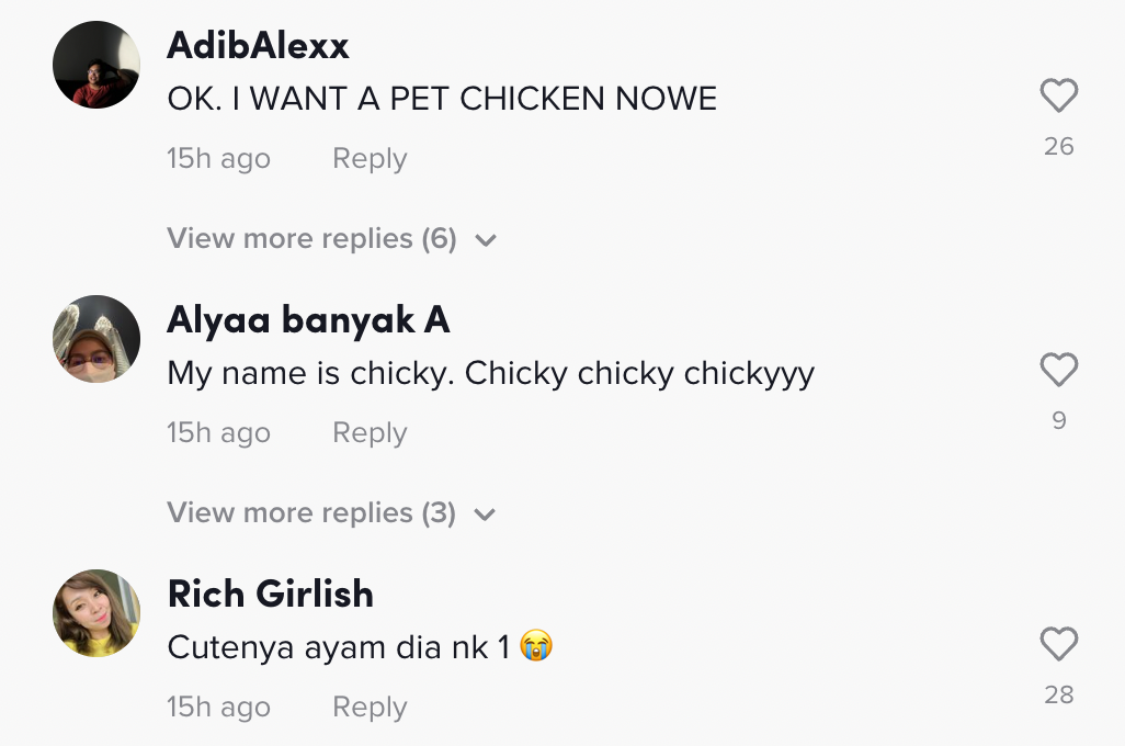 Menerusi video tersebut, kelihatan seorang gadis berkongsi gelagat ayam peliharaannya setibanya dia pulang ke rumah.