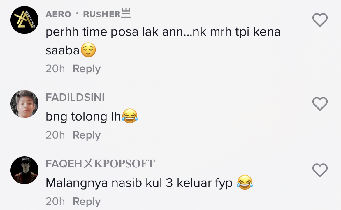 Berikut di bawah merupakan antara komen menarik daripada netizen di TikTok: