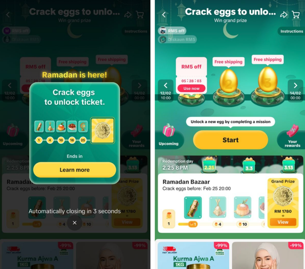 Dengan pelbagai promosi, permainan ganjaran dan jaminan barangan tulen, kempen ini memberi peluang kepada anda untuk berjimat sambil membuat persiapan Ramadan dan Raya dengan lebih terancang.
