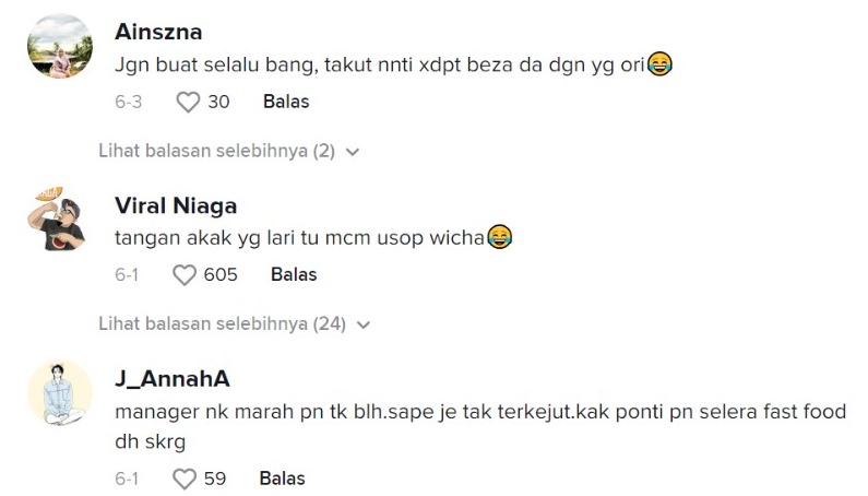 Berikut di bawah merupakan antara komen menarik daripada netizen di TikTok: