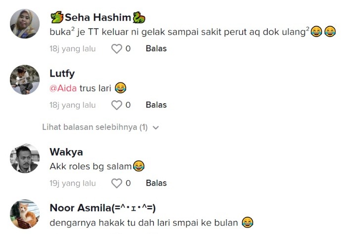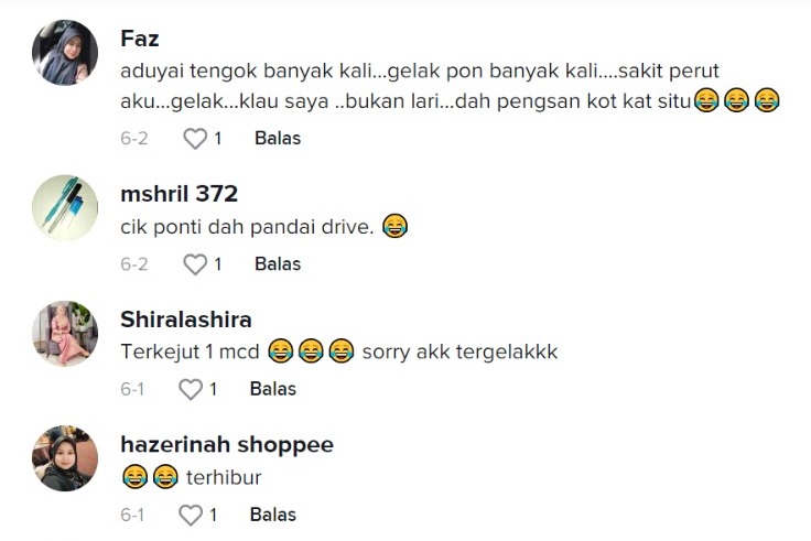 Dalam pada itu, tinjauan di ruangan komen mendapati rata-rata netizen turut terhibur dengan gelagat 'pontianak' itu dan memberi komen yang mencuit hati mengenainya.