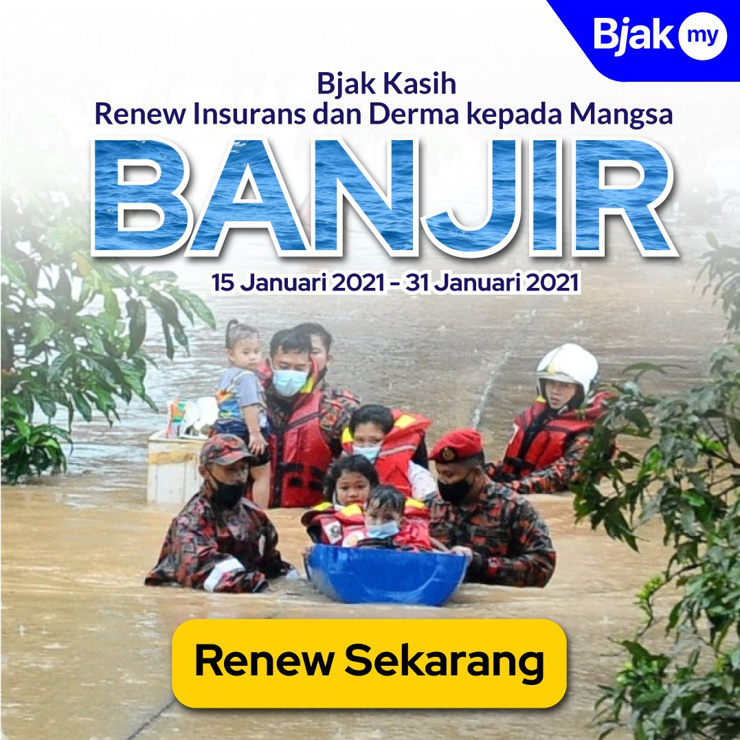 Difahamkan pada setiap ringgit yang disumbangkan oleh pelanggan Bjak.my, syarikat ini akan menggandakan dengan jumlah yang sama. Dalam erti kata lain, lebih banyak pengguna yang memperbaharui insurans di Bjak.my, makin lebih banyak sumbangan yang dibuat Bjak.my buat mangsa banjir.