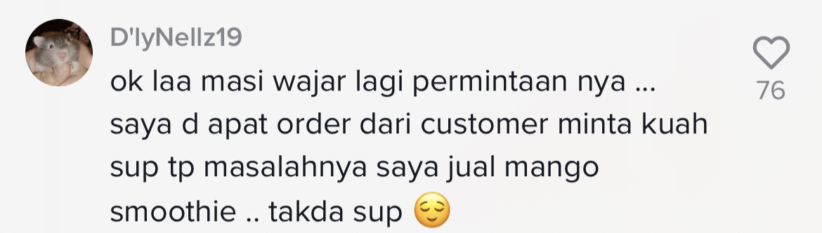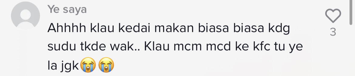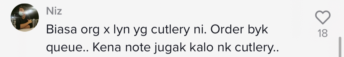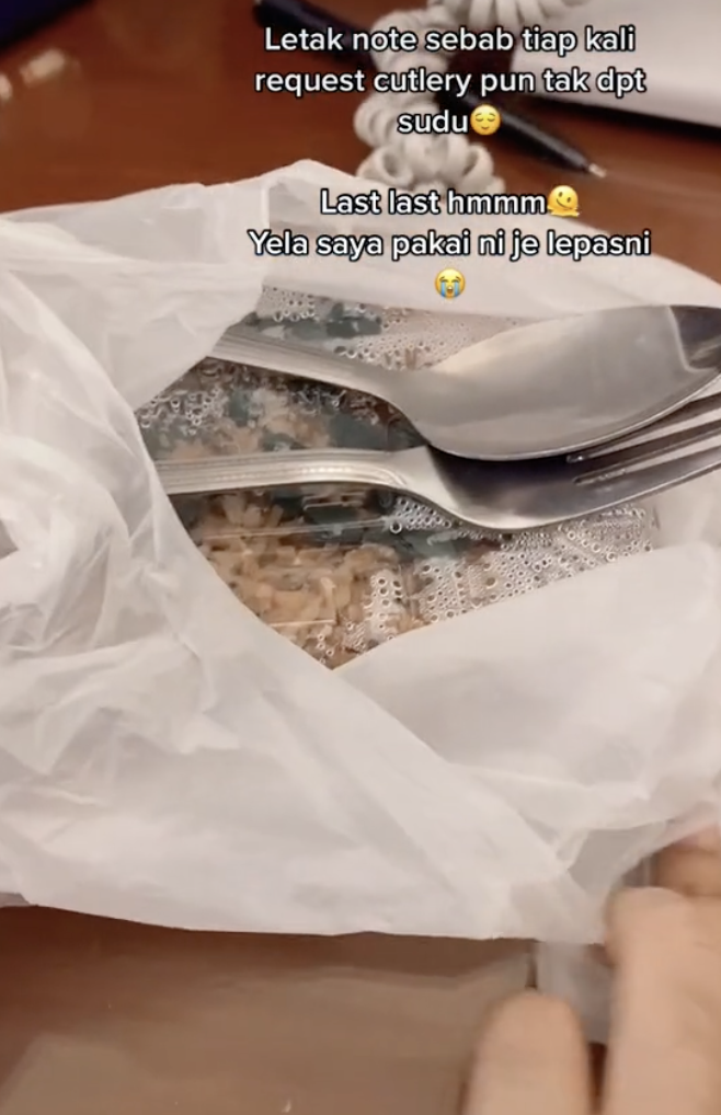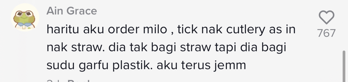 "Haritu aku order air Milo, tick nak cutlery as in nak straw. Dia tak bagi straw tapi dia bagi sudu garfu plastik. Aku terus jemm" – Netizen