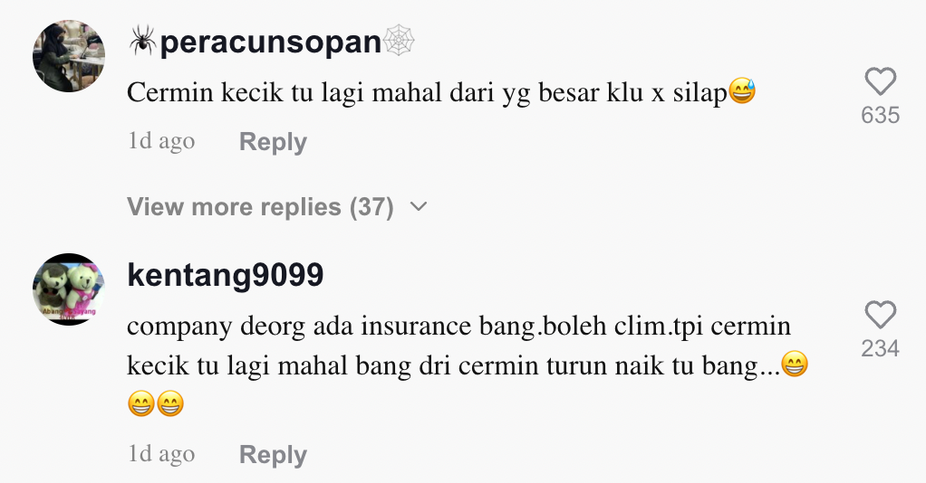 "Yang cermin kecil lagi mahal sebenarnya" – Netizen